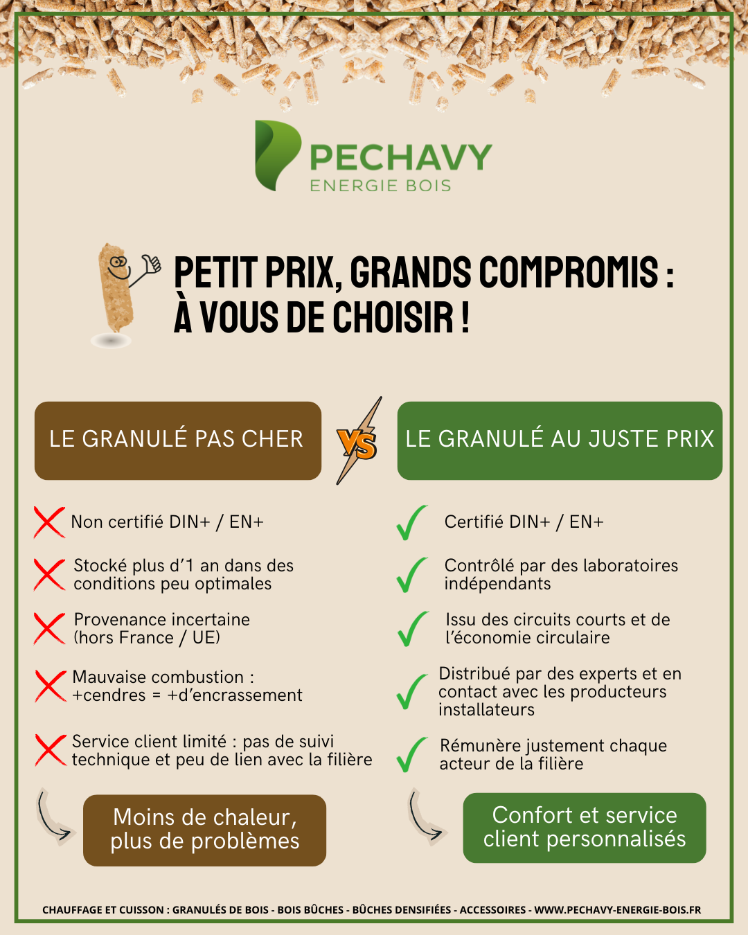 Un granulé moins cher est très fréquemment non certifié (DIN+, EN+). Et ça, ça signifie :